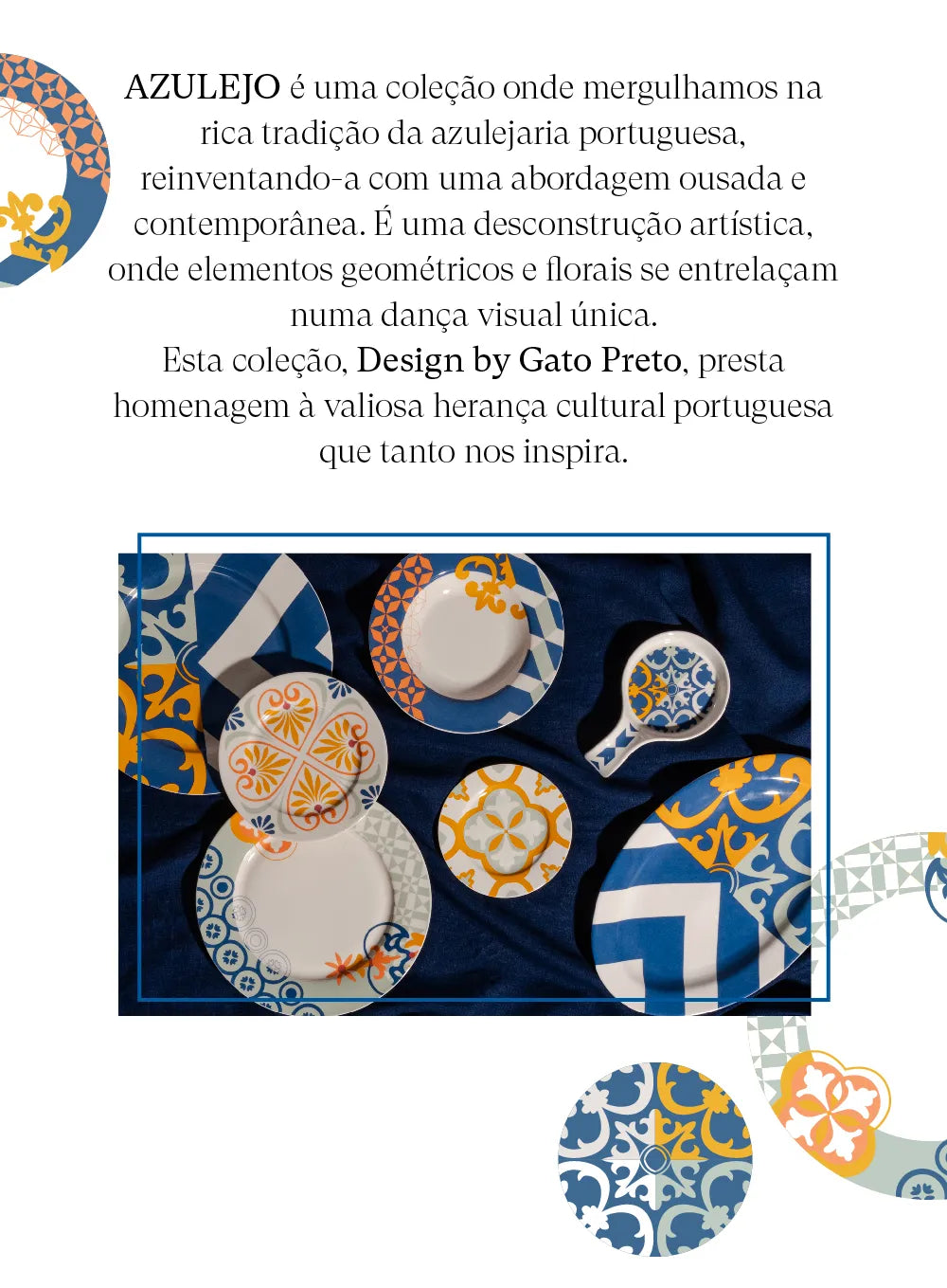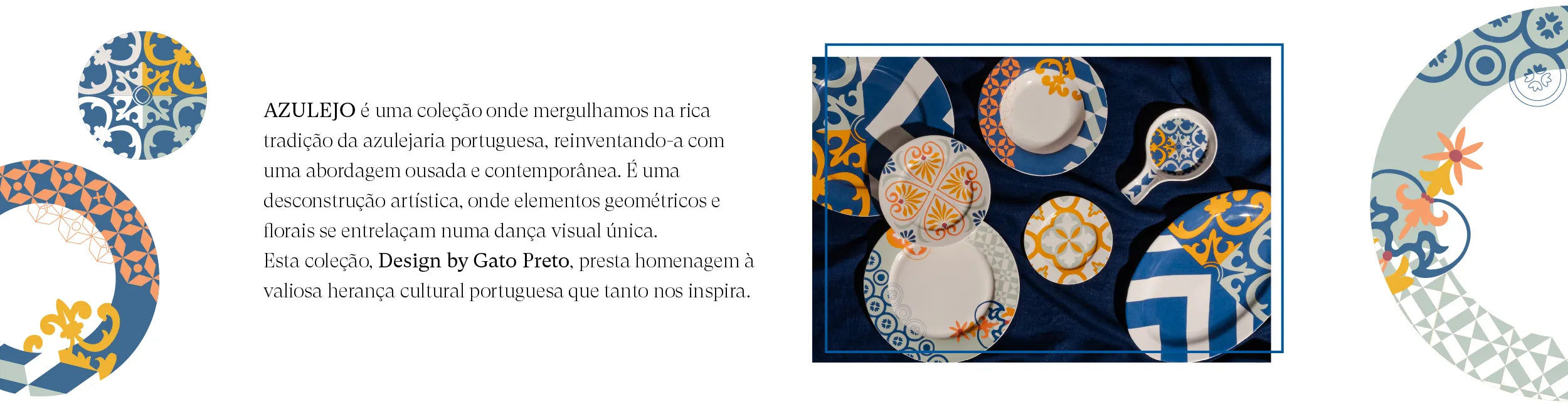 AZULEJO é uma coleção onde mergulhamos na rica tradição da azulejaria portuguesa, reinventando-a com uma abordagem ousada e contemporânea. É uma desconstrução artística, onde elementos geométricos e florais se entrelaçam numa dança visual única.Esta coleção, Design by Gato Preto, presta homenagem à valiosa herança cultural portuguesa que tanto nos inspira.