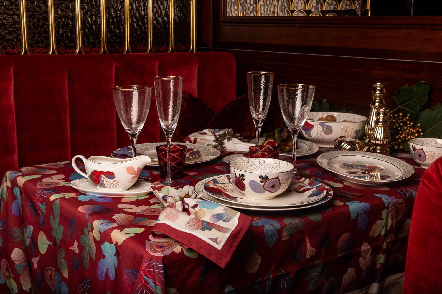 A coleção Figo é uma celebração da natureza e da arte de receber bem. Inspirada na delicadeza e na exuberância do figo e na simbologia da Figueira, Árvore da Vida, comemorando o espírito de prosperidade, abundância e imortalidade, esta linha de produtos combina sofisticação e charme em cada detalhe.