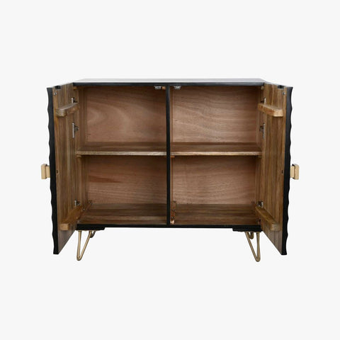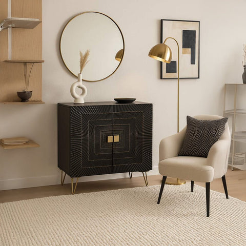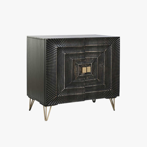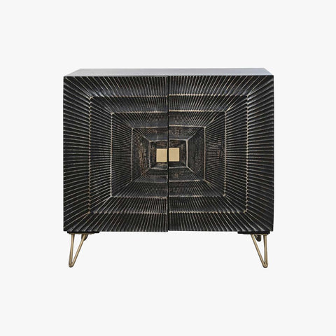 Its embossed geometric lines evoke depth and movement, transforming the furniture into a true piece of functional art.