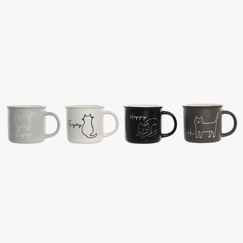 A collection of mugs in a minimalist style, featuring elegant illustrations of cats drawn with simple lines. Neutral and modern tones that match any kitchen. Perfect for those who enjoy a discreet and cozy design.