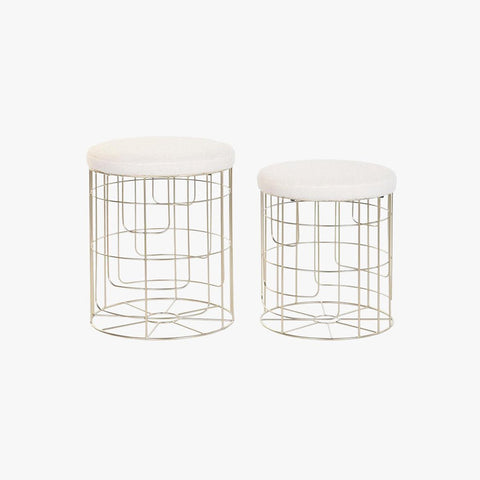Set of Two Gold Stools with Storage and Bouclé Lid SERENA