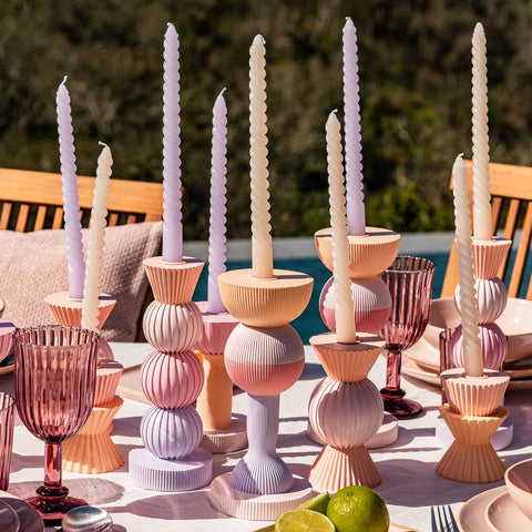 Set of White Spiral Candlestick Candles MARSHMALLOW