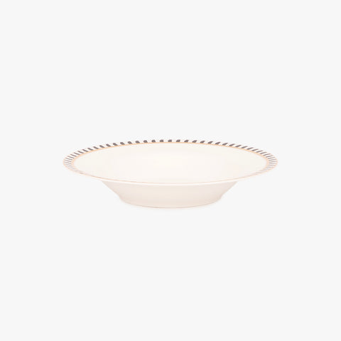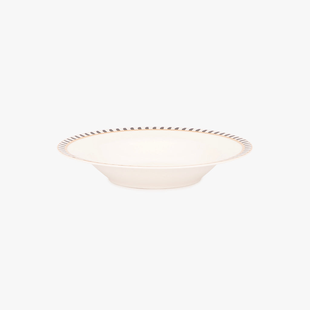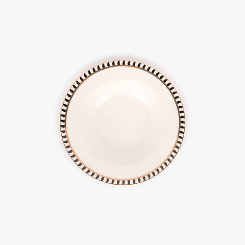 The Black Cat collection is a bold fusion of urban sophistication and Art Deco elegance. Its design plays with geometric contrasts between black and white, positive and negative, where the silhouette of a cat is subtly revealed, almost hidden, creating an intriguing visual effect. The restrained palette, with touches of metallic gold, reinforces the glamour and modernity of each piece. A porcelain tableware set, consisting of two place settings, a dinner plate, a dessert plate, a soup plate, two bowls, a salad bowl, and tea and coffee cups in sets of 2 and 6 pieces.