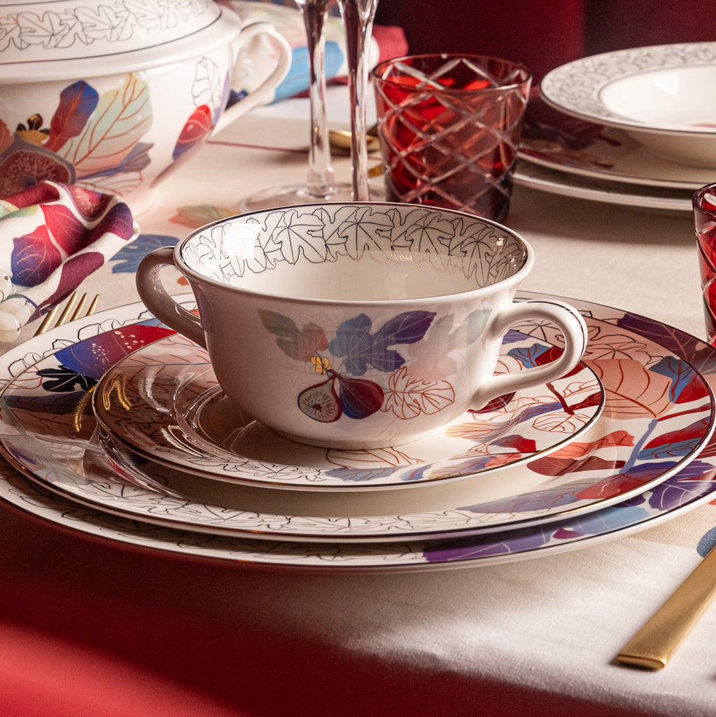 Because of this rich symbolism, our party service is inspired by its leaves and fruits, with digital illustrations rich in gradients of vibrant colors, resulting in surreal immersive gardens with metallic gold touches, bringing all the refinement that celebrations deserve.