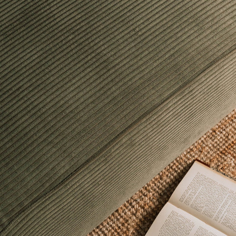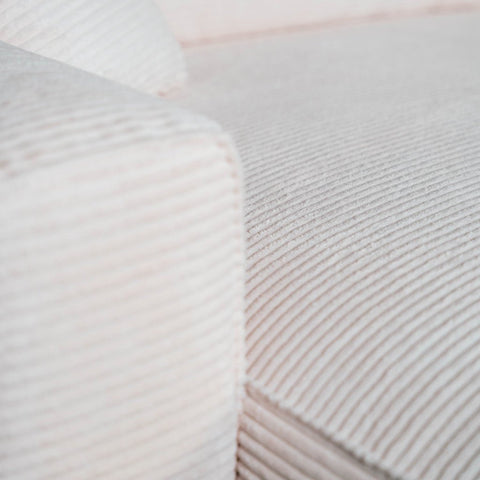 The wide seats and loose back cushions provide enveloping comfort, ideal for moments of rest, socializing, or extended leisure. The corduroy fabric enhances the feeling of coziness and adds texture to the set, elevating the sofa's decorative character.