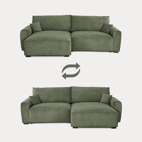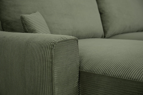 The LAUREN sofa is a sofa with a reversible chaise longue and storage, designed to offer maximum comfort and functionality in contemporary settings. Its balanced design, combined with the corduroy fabric upholstery, creates a striking and welcoming presence in the living room, making it a centerpiece in the space.
