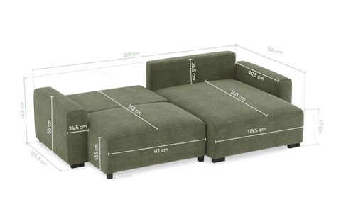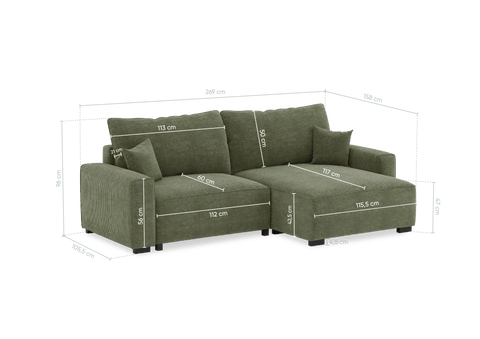 With generous dimensions and a contemporary aesthetic, the LAUREN sofa is an excellent choice for those looking for a sofa with storage and a chaise longue that combines comfort, functionality, and a modern look.