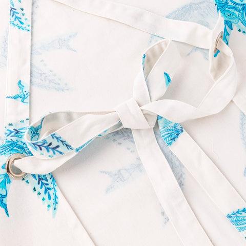 Avental Algodão Branco com Pássaros Azuis BLUE BIRD
