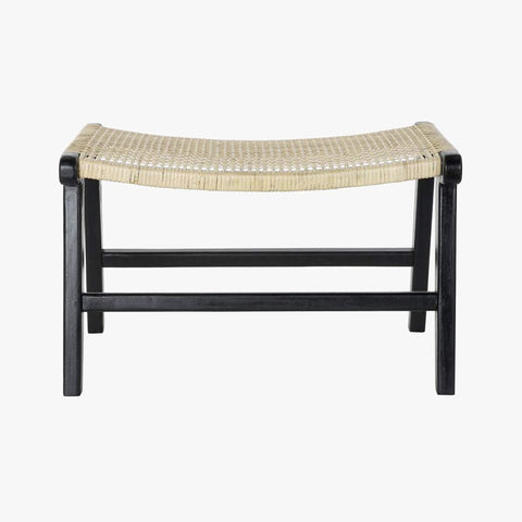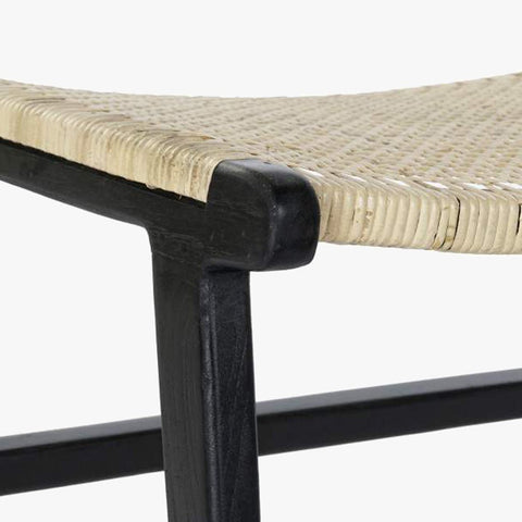 Banco Preto de Madeira e Rattan 65x47x40cm VEREDA
