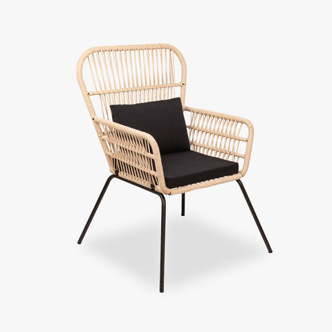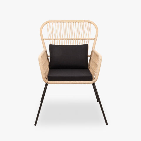 Sillón de Metal y Cuerda Natural AKUMAL. Una pieza esencial de gato preto, perfecta para dar un toque de estilo y confort a su espacio con originalidad y encanto.