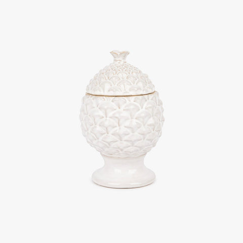 Caixa Branca PINHA. Uma peça essencial da gato preto, perfeita para dar um toque de estilo e conforto ao seu espaço com originalidade e charme.