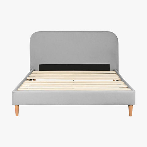 Cama Tecido com Cabeceira Arredondada e Pés de Madeira Cinza SERENA