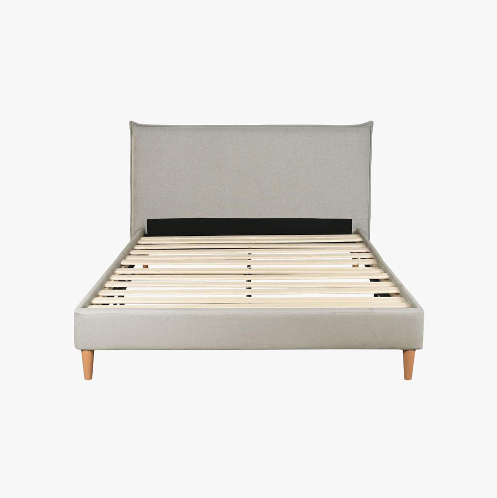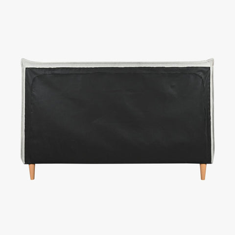Cama Tecido com Cabeceira Reta e Pés de Madeira Bege SERENA