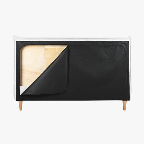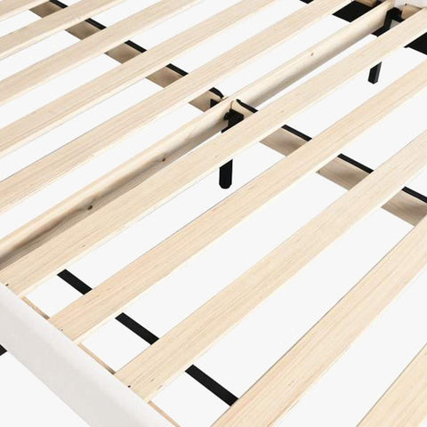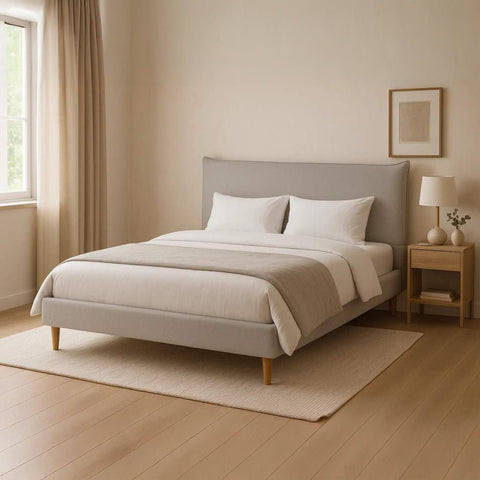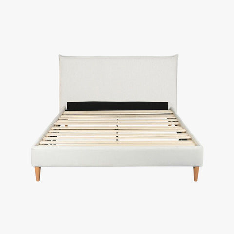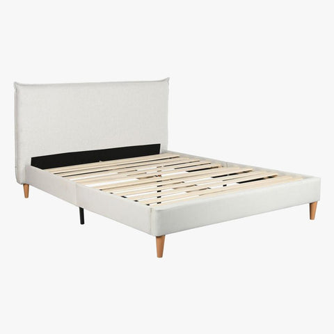 Cama Tecido con Cabecero Recto y Patas de Madera Cru SERENA