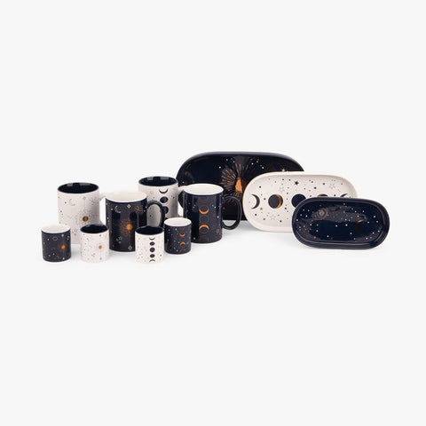 Las piezas son ricas en imagen visual con grafismos simplistas y tonos brillantes, que representan las constelaciones y la Astrología, transmitiendo un sentimiento de serenidad.