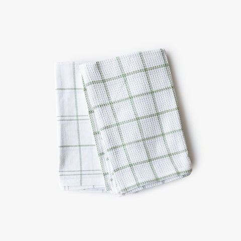 Conjunto de dos paños de cocina a cuadros verde y blanco EVERYDAY