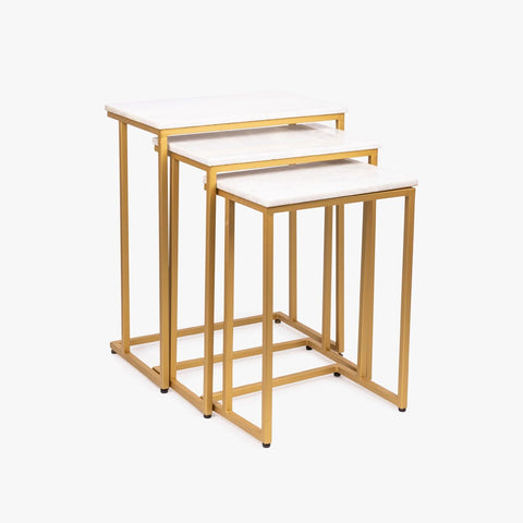 Conjunto de tres mesas auxiliares con tapas de mármol 62x62x40,50 AGRA