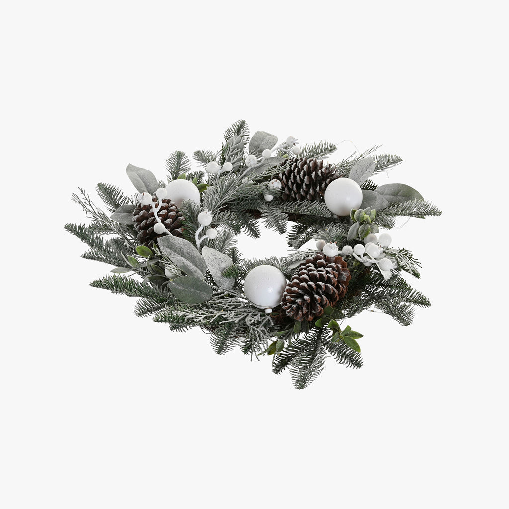 Os acabamentos brilhantes, metais polidos, vidros espelhados e tecidos de aspeto luxuoso acrescentam profundidade e elegância, enquanto os motivos celestiais, como luas e estrelas, espalham-se pela decoração, lado a lado com a neve, galhos pintados e pássaros delicados com detalhes metalizados.