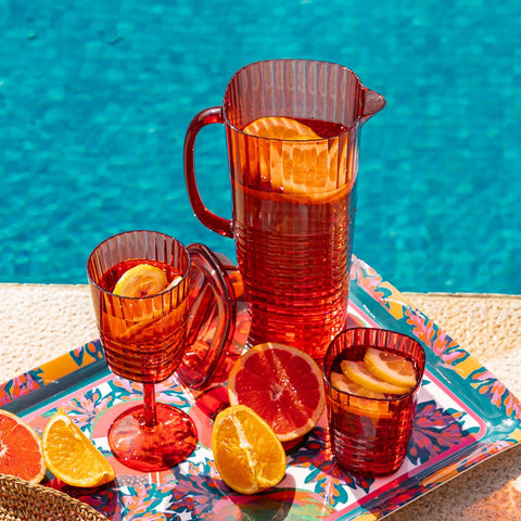 La ligereza del material hace que sea la combinación perfecta para servicios de exterior pero también para cualquier mesa de fiesta o para servir una sangría, refresco o agua.