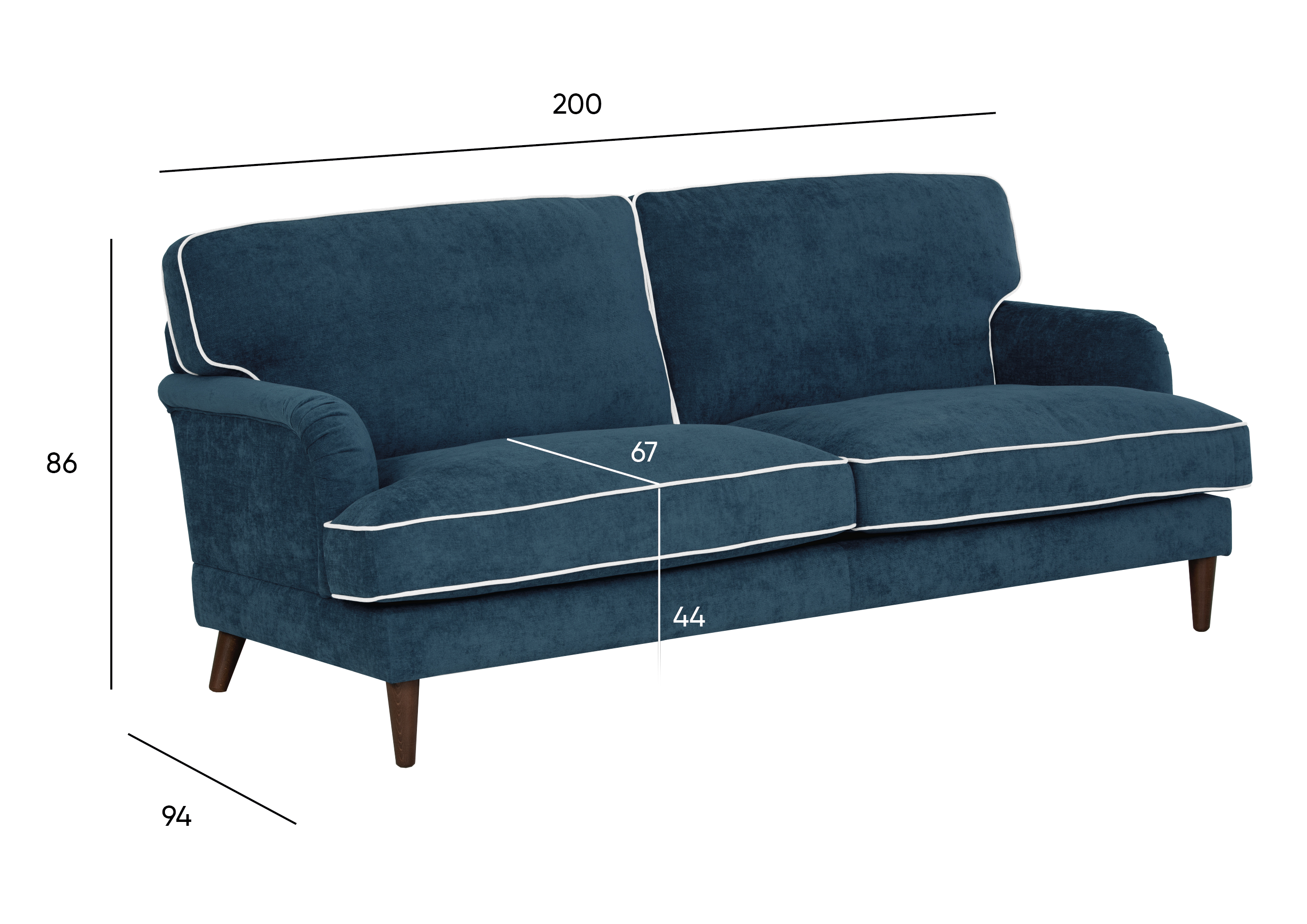 Destaca-se pela atenção aos pormenores, onde os tecidos principais — azul-escuro, toffee e taupe — combinam harmoniosamente com o vivo a contrastar em bege, conferindo um toque de distinção e sofisticação a cada produto. Ideal para quem aprecia um estilo intemporal com uma abordagem moderna.