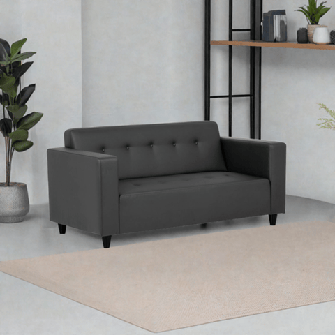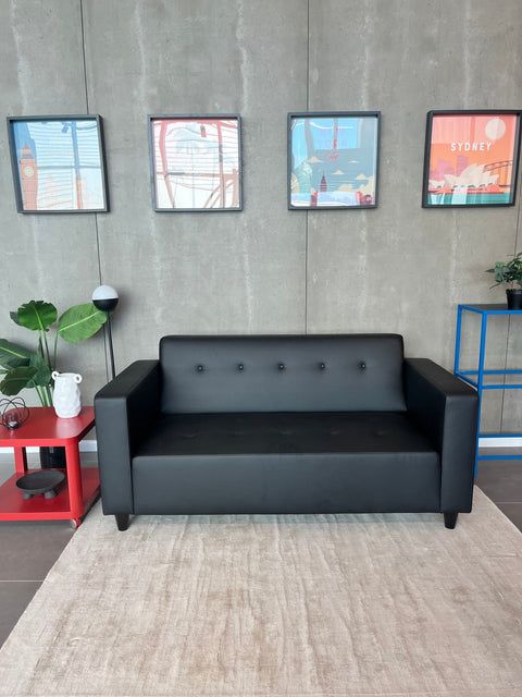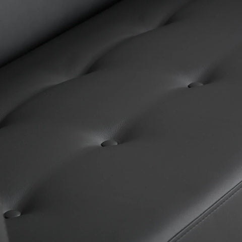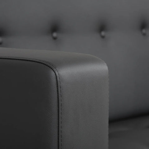 Este sofá de 3 lugares, pequeno e económico, em pele sintética preta com botões, é excelente para espaços reduzidos e tem uma ótima relação qualidade-preço. Com um design clássico e moderno, é perfeito para a tua decoração e serve como sofá de 2 ou 3 lugares. Estofado em PU sintético de alta qualidade e toque suave, feito em Portugal.