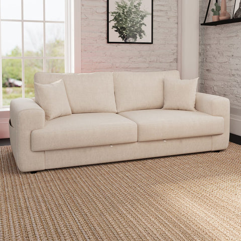 Gracias a sus asientos extra grandes y acompañados por un brazo de espuma suave, este sofá le proporciona la sensación satisfactoria de acurrucarse mientras ve sus programas favoritos. El cajón escondido debajo del asiento le permite guardar mantas o incluso cojines.