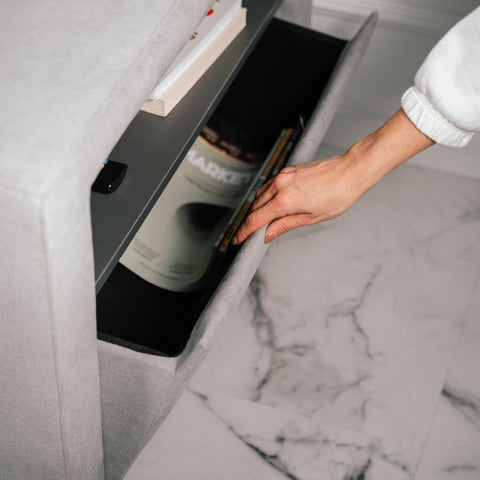 Sofá cama de canto de com puff e arrumação cinza ZURIE