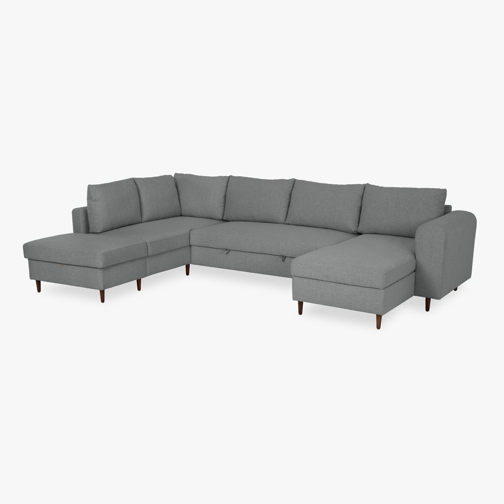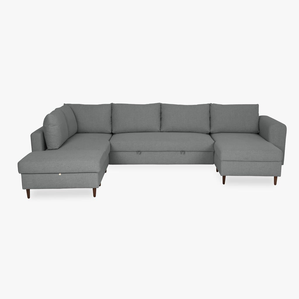 Sofá em U familiar de 4 lugares com linhas clássicas