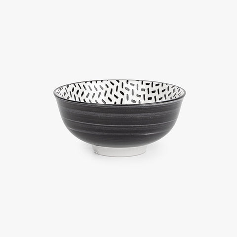 Producido en Porcelana New Bone China, está compuesto por cuatro patrones diferentes en dos colores, Negro y Azul, en plato llano, plato de postre, plato de sopa y dos copas.