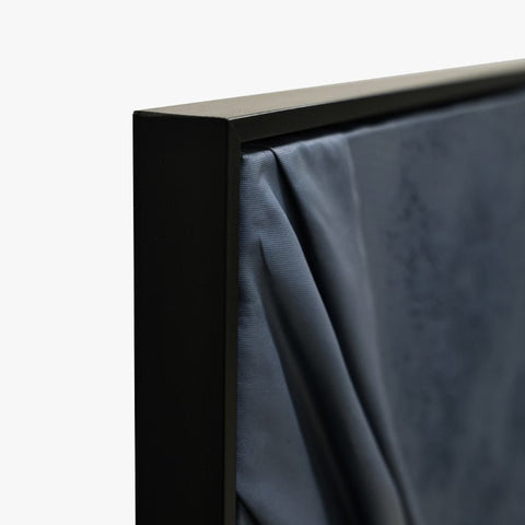 El tejido ondula suavemente, como si el azul profundo fuera agua en movimiento. Cada pliegue crea variaciones sutiles de luz, sugiriendo corriente y calma, una meditación visual sobre profundidad y serenidad