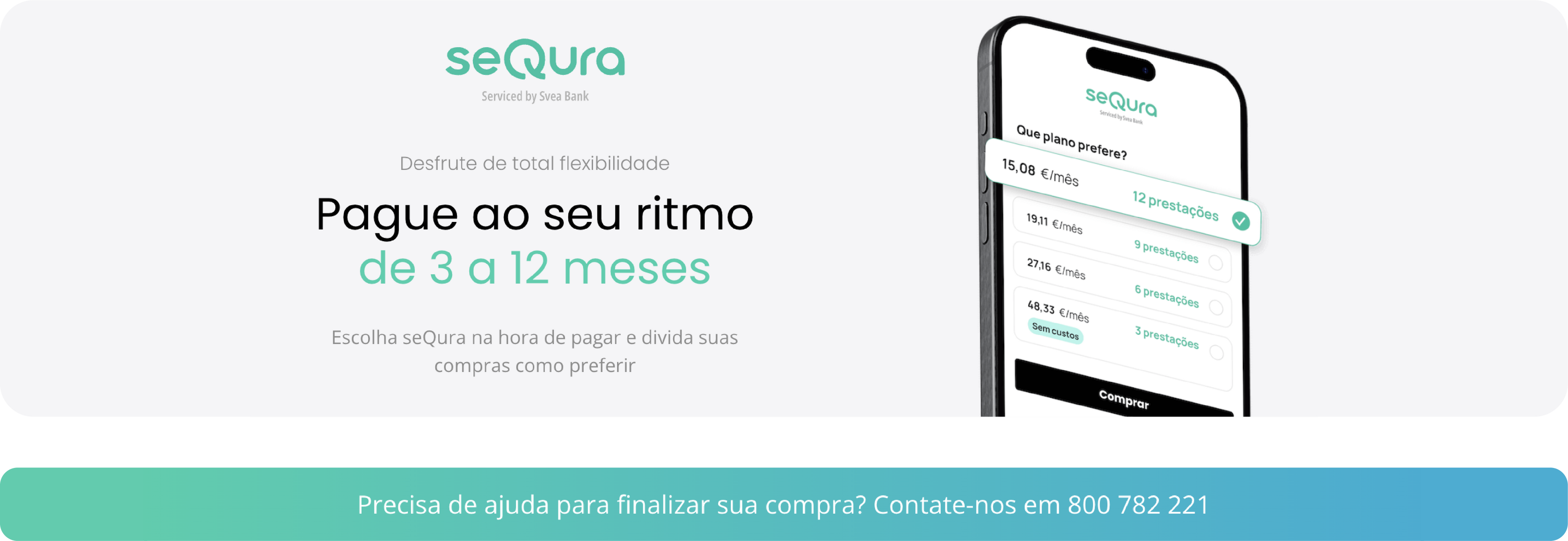 « Flexi » est une combinaison de plusieurs méthodes de paiement proposées par Svea via la plateforme technologique SeQura, où vous pouvez choisir de payer votre achat dans les 3 mois, sans intérêt ni aucun type de commission, ou de payer en 6, 9, 12 mois, en payant un coût financier.