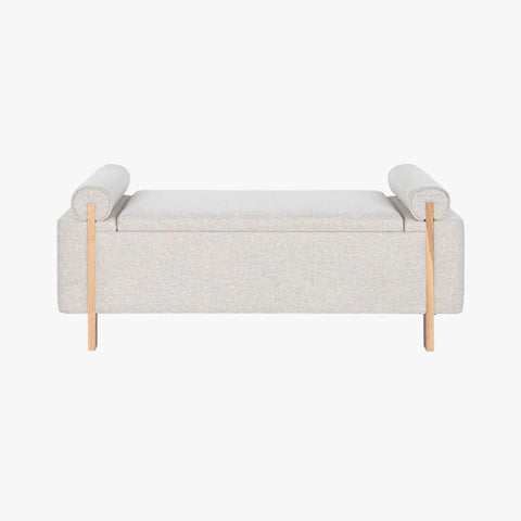 Banqueta grise en tissu et bois avec rangement 120x45x50 SERENA