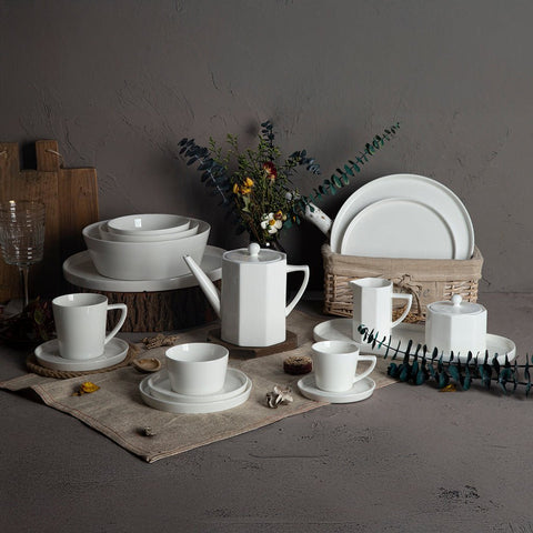 Le service en porcelaine Bright White incarne la sophistication minimaliste. Avec sa forme ronde et ses bords subtilement définis, il allie tradition et modernité pour une expérience culinaire raffinée.