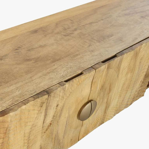 Ses lignes géométriques en relief évoquent profondeur et mouvement, transformant le meuble en une véritable pièce d'art fonctionnelle.