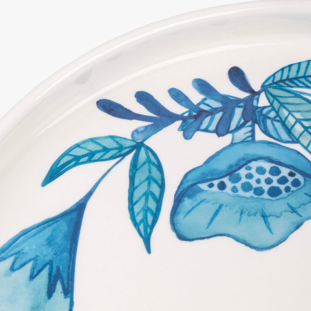 La symbiose entre les oiseaux et la végétation des tapisseries de Castelo Branco et le bleu profond des carreaux du XVIIIe siècle est peinte à l'origine à la main à l'aide de la technique de l'aquarelle, ce qui donne un service élégant.