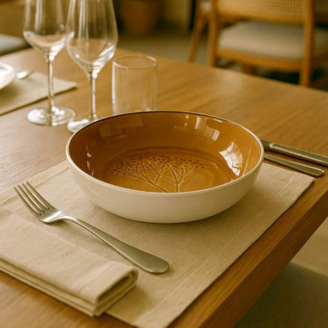 Les brindilles et herbes sauvages laissent leur empreinte sur les pièces de la collection Silvestre, comme cueillies directement dans les champs et immortalisées en céramique. Avec ses formes simples, son relief organique et ses émaux aux tons naturels, cette ligne invite à une table pleine d'âme : imparfaite, terreuse et pleine de vérité.