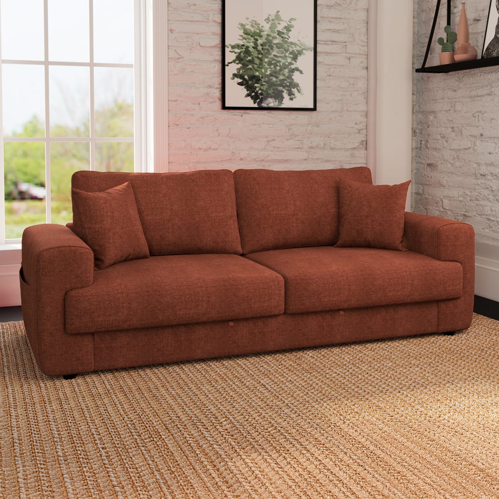 Avec ses assises extra-larges et son accoudoir en mousse douce, ce canapé procure une sensation agréable de confort pendant que vous regardez vos programmes préférés. Le tiroir caché sous l'assise permet de ranger des couvertures ou même des coussins.