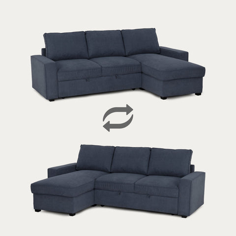 O sofá Nina é simples, mas ao mesmo tempo orgânico e funcional. Encaixa-se facilmente em qualquer tipo de decoração, com linhas limpas e elegantes que agradam a todos os gostos. Para além disso, conta com cama oculta e arrumação integrada na chaise longue, ideal para quem precisa de uma cama extra para visitas ou de espaço para guardar almofadas, mantas e lençóis.