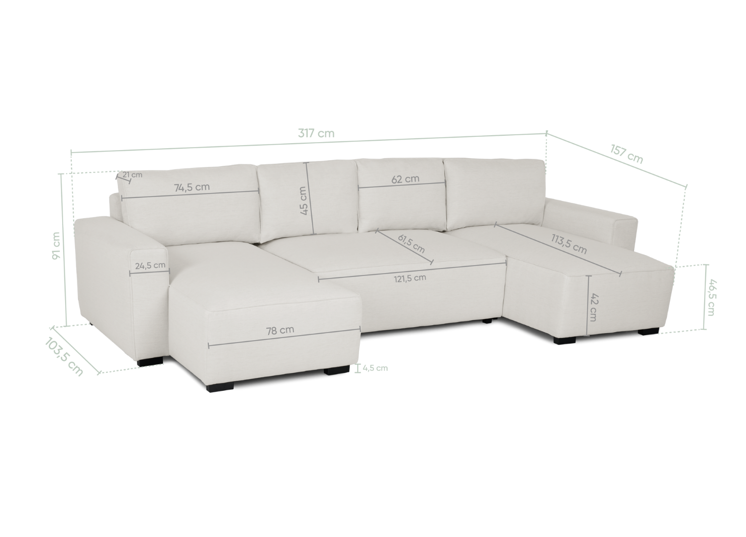 Dimensions (cm) : 317 x 157 x 91 cm