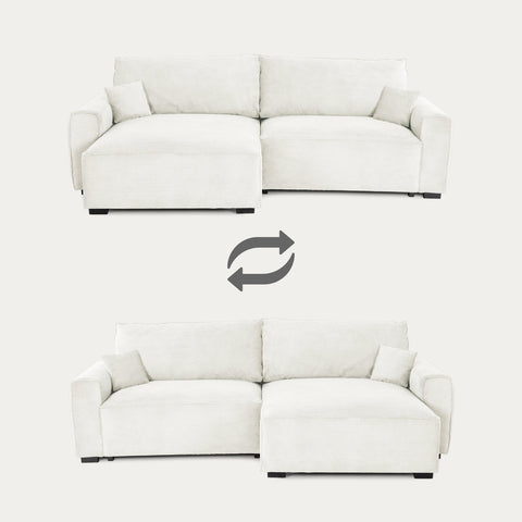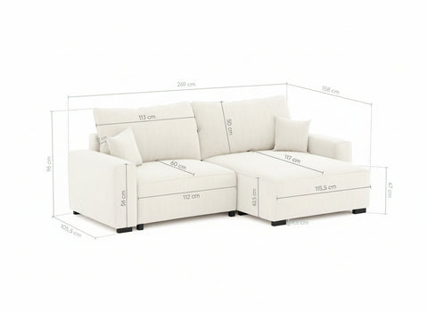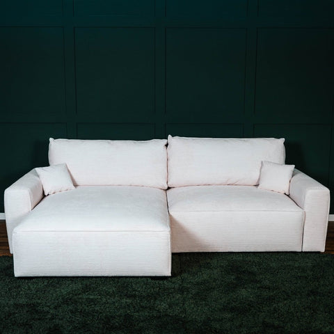 Le canapé LAUREN est un canapé avec méridienne réversible et rangement, conçu pour offrir un confort maximal et une fonctionnalité dans des environnements contemporains. Son design équilibré, associé au revêtement en tissu côtelé, crée une présence marquante et chaleureuse dans le salon, en faisant une pièce centrale de l’espace.