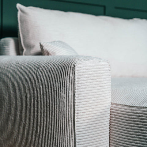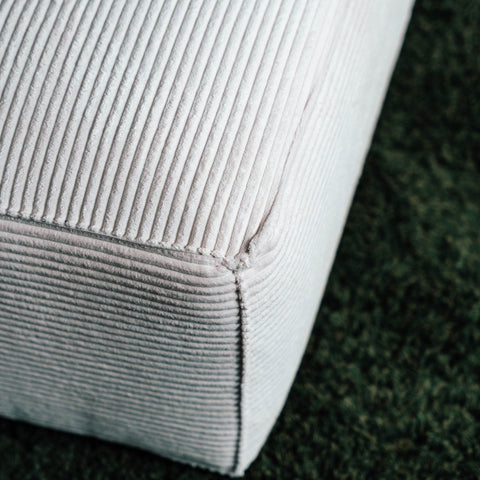 Les assises larges et les coussins de dossier amovibles offrent un confort enveloppant, idéal pour les moments de repos, de convivialité ou de loisir prolongé. Le tissu côtelé renforce la sensation de cocooning et ajoute de la texture à l’ensemble, rehaussant le caractère décoratif du canapé.