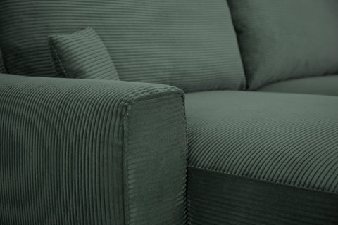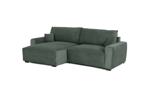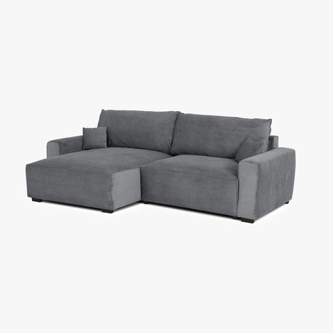 Le canapé LAUREN est un canapé avec méridienne réversible et rangement, conçu pour offrir un confort maximal et une fonctionnalité dans des environnements contemporains. Son design équilibré, associé au revêtement en tissu côtelé, crée une présence marquante et chaleureuse dans le salon, en faisant une pièce centrale de l’espace.