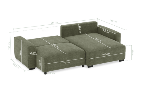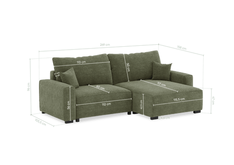 Sofá cama com chaise longue reversível verde LAUREN