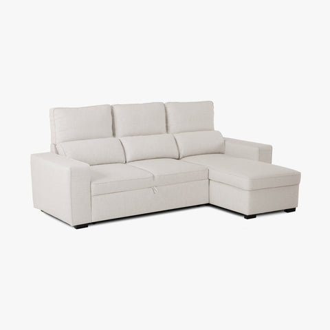Sofá cama com chaise longue reversível e arrumação bege HARPER