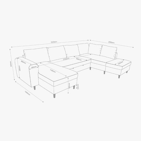Canapé familial 4 places en U aux lignes classiques