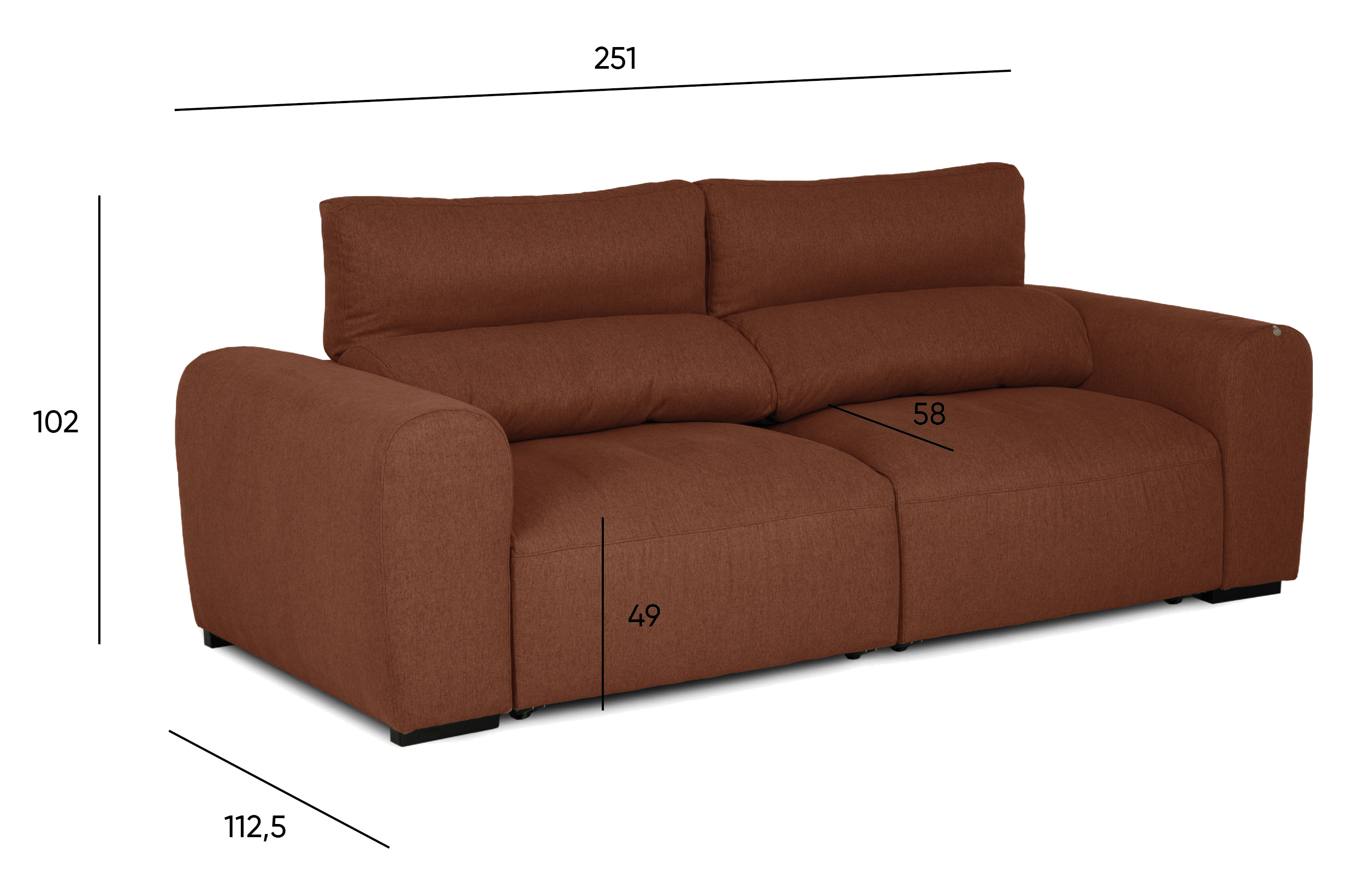 Dimensions (cm) : 102x251x112,5x