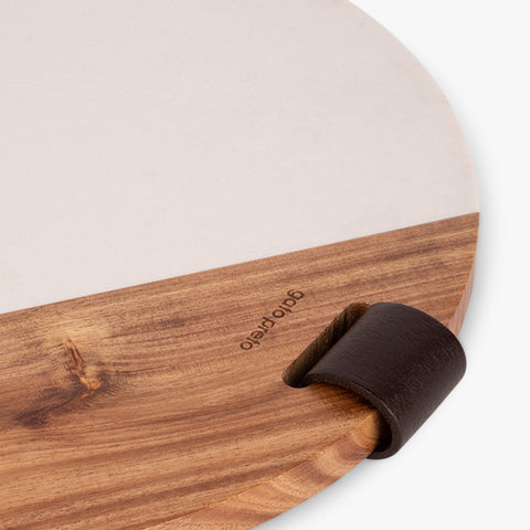 Tábua Redonda de Madeira et Pierre avec Poignée NEPAL