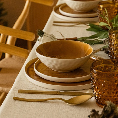 Les brindilles et herbes sauvages laissent leur empreinte sur les pièces de la collection Silvestre, comme cueillies directement dans les champs et immortalisées en céramique. Avec ses formes simples, son relief organique et ses émaux aux tons naturels, cette ligne invite à une table pleine d'âme : imparfaite, terreuse et pleine de vérité.
