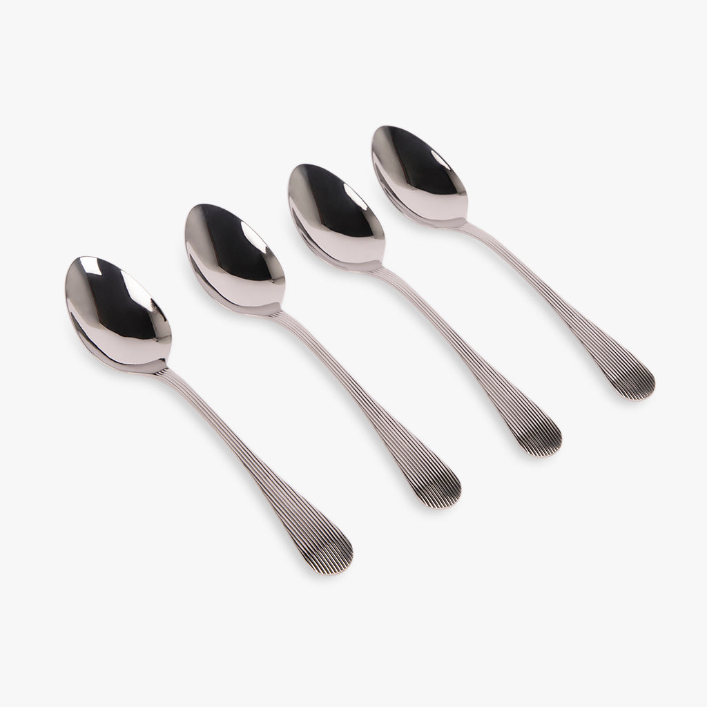 Conjunto 4 Colheres de Sobremesa Aço Inox Prateado GROOVY