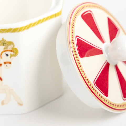 Inspirada nos carrosséis clássicos que enchem de cor e alegria feiras e praças por todo o mundo, esta coleção é uma viagem divertida ao imaginário. As peças ganham vida com personagens encantados, cores vibrantes e ilustrações detalhadas que giram em torno da fantasia.